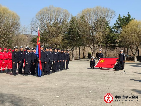 “我宣誓:继承先烈遗志,发扬革命传统……”在鲜红的党旗和警旗前,全体人员高举右手,重温誓词。铿锵有力的誓言在烈士陵园上空久久回荡,这不仅是对英雄的告慰,更是平泉公安与社会应急救援力量对党和人民作出的庄严承诺。每一声誓言都表达了大家继承先辈遗志、献身平安建设的坚定信念。