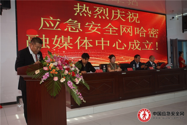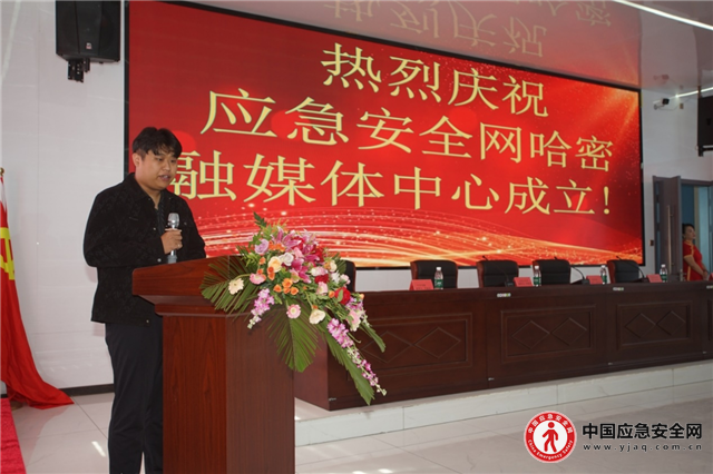 应急安全网总裁祝阅武在揭牌仪式上发言。他表示,应急安全网哈密融媒体中心的成立是一个值得铭记的时刻,更是应急安全网发展历程中”一座重要的里程碑“。