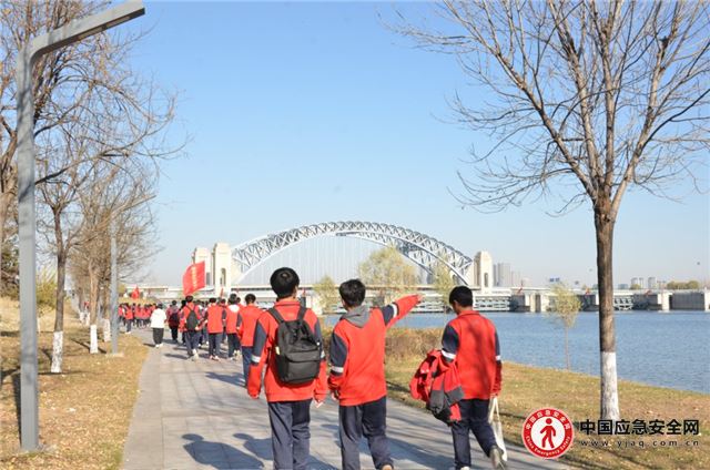 随着出发令下,同学们高举班旗,列队整齐,向着汾河沿岸有序进发。响亮的口号此起彼伏,充满了对此次“心灵之旅”的期待。