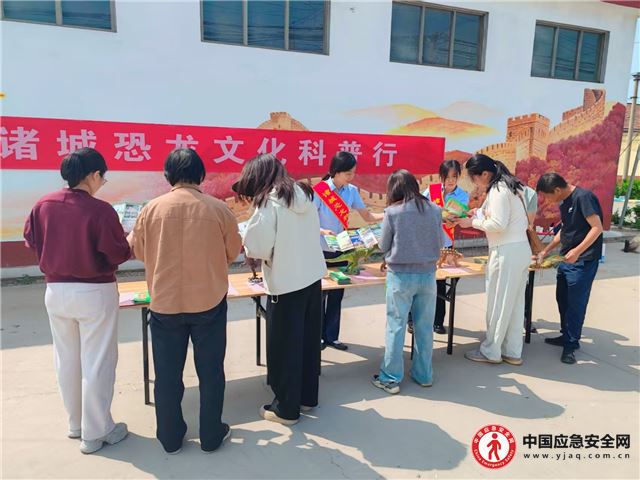 在高相社区活动现场,工作人员通过咨询讲解、恐龙雕塑展示、发放恐龙科普宣传折页和《古生物化石保护条例》明白纸等形式,向村民介绍诸城恐龙化石的保护成果,尤其结合本地典型案例,深入浅出地阐释了私挖盗采化石的法律后果,引导村民自觉参与到化石资源的保护工作中去。