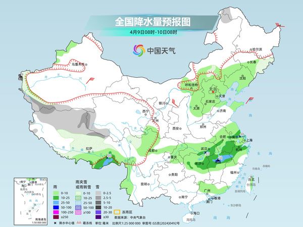 未来三天,南方仍将处多雨模式,降雨核心区有所北抬,长江中下游地区需警惕强降雨可能引发的泥石流、山体滑坡等次生灾害。预计4月10至12日和13日至15日,还有两次较强降水天气过程将影响江南、贵州、重庆等地,需保持关注。