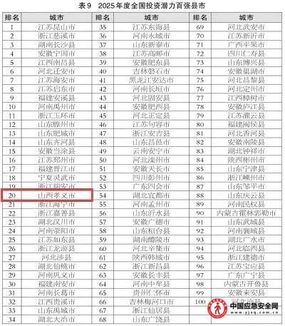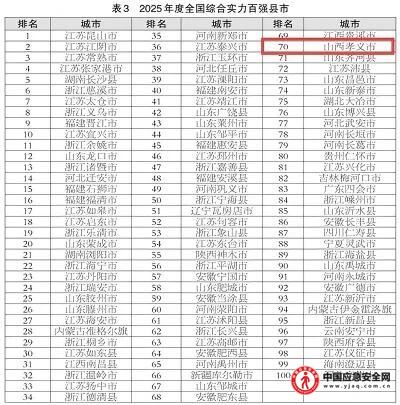 本网山西讯(郭晋成 通讯员金萱 温芝瑞)近日,《光明日报》和《经济日报》联合发布了2025年中国中小城市高质量发展指数研究成果,山西吕梁孝义市位居全国综合实力百强县市的第70位,较去年上升1位。作为山西省唯一上榜县市,孝义市已连续19年跻身全国百强,领跑全省县域经济发展。同日发布的榜单显示,孝义市还位列全国投资潜力百强县市第20位,全国科技创新百强县市第75位。