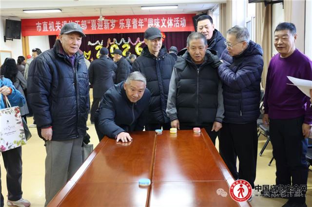 随后,趣味文体活动精彩开启。本次活动共设计了“迎新接福”接球乐开怀、“五谷丰登”护谷兆丰年、“纳福掷喜”掷球送吉祥、“同心筑梦”搭木贺新岁、“棋开新局”智引好运来、“祥瑞冰壶”推棋迎新岁6个项目,有的需要积极动脑,有的需要身体协调、手脑并用,老干部们各选所长,全心投入各项活动中——在“迎新接福”接球乐开怀中考验反应与速度,促进手脑协调;在“五谷丰登”护谷兆丰年中比拼细致与耐心,练就沉稳心态;在“纳福掷喜”掷球送吉祥中考验眼力与体力,顺便活动筋骨;在“同心筑梦”搭木贺新岁中则充分展示搭建技巧与稳定性;“棋开新局”智引好运来项目吸引了众多棋艺爱好者,互不相让一拼上下;“祥瑞冰壶”推棋迎新岁项目将现场气氛推向高潮,老干部们聚精会神地盯着目标线,灵敏地将“冰壶”推向前进,引来阵阵欢笑与掌声。活动现场助威声、欢笑声此起彼伏,充分展现了离退休干部们热爱生活、永葆活力的精神风貌。