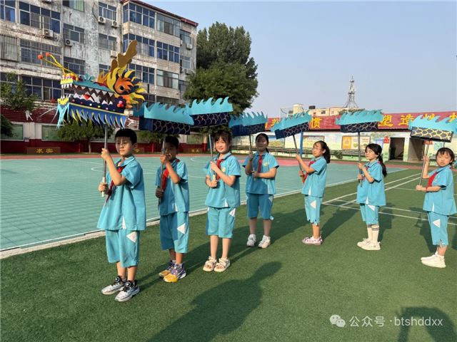 为了让传统文化的传承更具仪式感,活动还延伸至操场。手持自制龙舟道具的学生们,脸上洋溢着自豪的笑容。这些凝聚着汗水与创意的道具,不仅是手工成果的展示,更成为传递端午文化的载体。