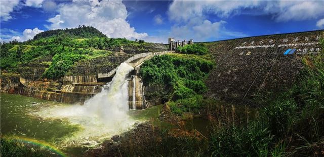 2018年6月22日在柬埔寨戈公省拍摄的中国援柬额勒赛水电站上大坝。
