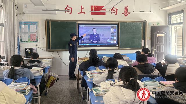 活动伊始,队员们与全体师生共同观看了2026年春季全国中小学消防安全公开课。通过沉浸式、案例化的视频教学,师生们系统学习了校园防火、火场逃生、应急处置等基础常识,直观认识火灾危害,牢固树立“安全第一、预防为主”的意识。