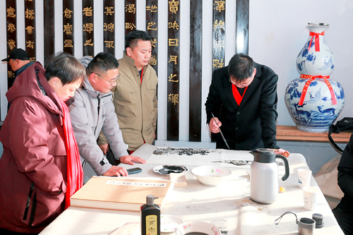 此次名家书画笔会作为首届屏山民俗文化节的开篇之作,不仅为游客带来了沉浸式的文化体验,更搭建了艺术与民俗、山水与人文交流的桥梁。尤其值得一提的是,嘉宾艺术家翟卫民 由于腿上有伤,行走不变,忍着伤痛从北京赶来参加这次活动,尽兴抒发对家乡旅游屏山民俗文化的期望和发展,活动巧妙融入了对屏山风景区财神山的礼赞与祈福。
