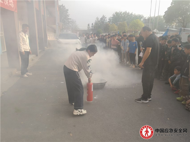 集合完毕后,学校相关负责人对演练进行总结,并围绕火灾预防、逃生技巧及报警流程等内容开展消防知识宣讲。随后,现场演示了干粉灭火器的使用方法,通过“提、拔、握、压”四字口诀,详细讲解操作要领。在互动环节中,孩子们主动上台体验灭火器实操,成功扑灭模拟火源,赢得阵阵掌声。