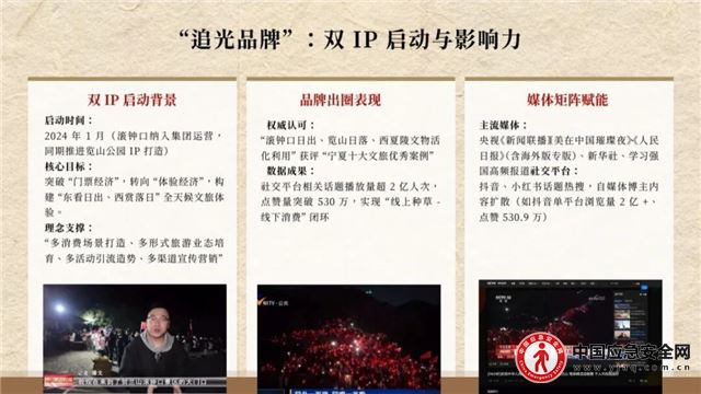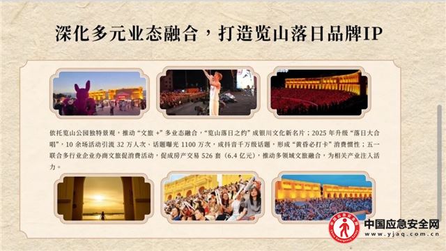 近年来,银川文旅集团重点聚焦“促进文旅消费、带动产业升级”,紧紧围绕“多消费场景打造、多形式旅游业态培育、多活动引流造势、多渠道宣传营销”的新文旅发展理念,深度挖掘旗下景区及览山公园等优质资源,成功打造了“滚钟口·日出之约”与“览山落日之约”两大标志性文旅IP,逐步形成“东看日出、西赏落日”的全天候、多场景文旅体验新格局。