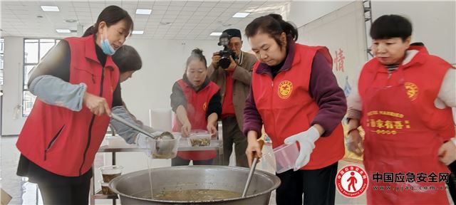 在西邵村新落成的综合文化服务中心内同样暖意流淌。一大早厨房里就飘出羊汤与炸糕的香气。餐桌旁,身着红色马甲的村民志愿者们分工协作,有的分装油糕,有的擀制面片,还有的麻利地揪着揪片——大家正为中午的敬老宴忙碌着,现场洋溢着温馨喜庆的节日氛围。