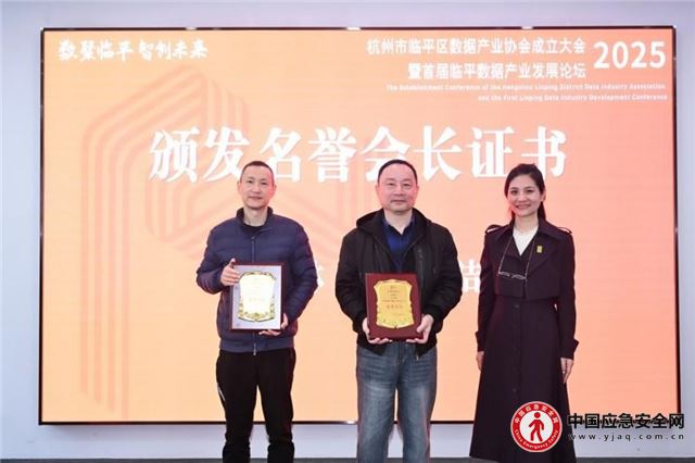 临平区政协主席张俊杰与新当选会长王慧共同为协会揭牌,红绸滑落间,标志着临平数据产业正式迈入“抱团发展、生态共荣”的新阶段。临平区数管局主要负责人为理事、监事长、会长、副会长等颁发证书,临平区人大副主任沈世杰宣布杭州市临平区数据产业协会正式成立。
